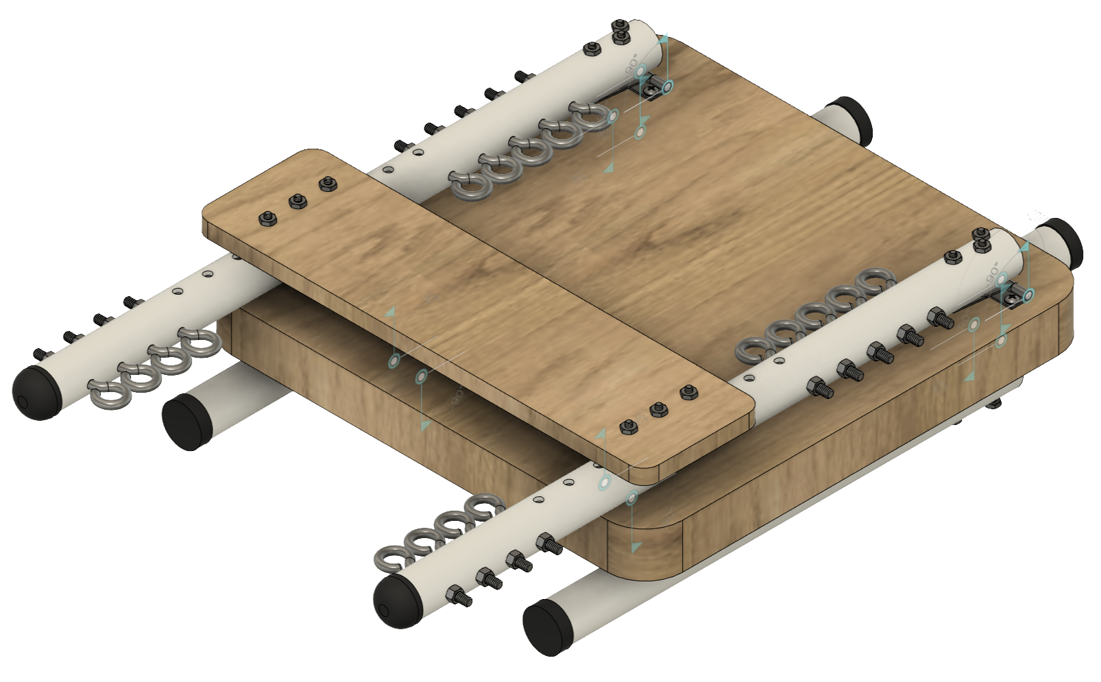 As a leg locking mechanism, we designed 3D printable clips in Fusion 360, which we had to prototype many times in order to get them to function properly. We did our best to design the clips so they wouldn't break when the leg was being locked and unlocked, but the brittleness of the filament proved to be quite a challenge. Ideally, these clips would be made out of a metal alloy, but we managed to do pretty well with the resources we had!